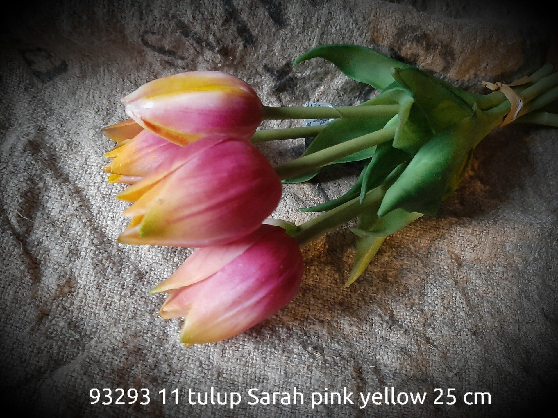 Met een beetje water in de vaas is het niet te zien dat hwt kunsttulpen zijn.