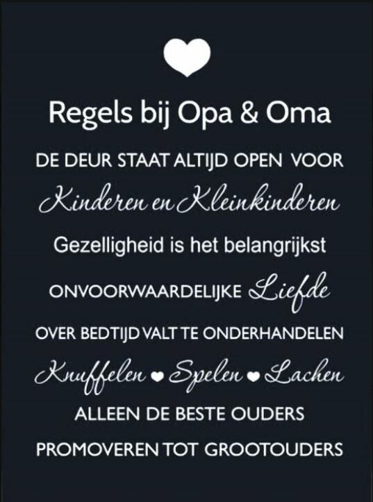 Nostalgisch foto en tekstbordje no.71 (4 stuks) regels bij opa en oma zwart